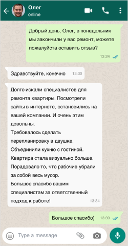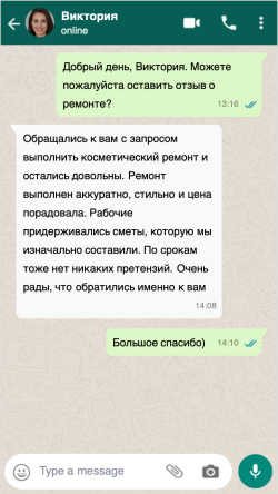 После заключения договора приступаем к ремонту. Длительность капитального ремонта составляет двадцать дней, а косметического 5. Срок работы зависит от площади помещения и его особенностей.